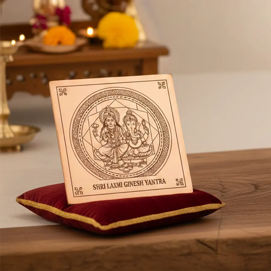 Shree Sampurna Laxmi Ganesh Yantra attracts abundance, success, and peace, removes obstacles, balances energies, and brings prosperity, wisdom, positivity, and favorable outcomes to home or workplace.